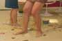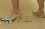 | Chloe has agreed to babysit for her friend Violet because she had to work a double shift. She invites Dahvia and Mary Jane over to Violet’s house to keep her company, and she then finds out that they actually saw that lying bitch Violet all dressed up and ready to go out! The ladies decide to exact a little revenge by trashing Violets house. They are all wearing sexy mini dresses, and remove their high heels to start the fun. They dump out the trash and toss around her clothes and shoes. Then they decide to move on to the kitchen to see what kind of other messes they can make. They pull out an array of snacks and kick up their dirty bare feet on the kitchen furniture to eat. They then decide that to create a bigger mess they will start throwing eggs, macaroni salad and meats and cheeses all over the floor. Soon they are getting the food all over their bare feet and even licking some of it off!! They are getting their stomp on and are stepping and smushing food all over the kitchen. Even the frozen dinners and hot dogs are not safe! The slipping and the smashing goes on and on, with the hot dogs getting stuck between their dirty sexy toes. They don’t stop until the cabinets are bare. Oh no!! Not the donuts, cake and pie too!!! And for the final slap in the face to Violet, the girls clean their dirty feet by using Violet’s pantyhose to clean between their sticky toes. I bet Violet learned her lesson. 45 min. |