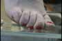 | Sasha is working hard at her desk. She sensually rubs her legs together showing off her red pedicured toe nails through the peep toes of her black patent high heels. She removes her shoes and walks across the room to the water cooler to find a hissing beetle on the floor. Sasha squashes him flat with her bare sole. Now watch from an under glass view as Sasha crushes crickets and beetles with her bare feet. She also finds crickets on the concrete walk way and quickly kicks off her sandals to crush them and feel the guts ooze under her naked soles. Back to the office we watch Sashas’ feet under the desk as she crosses her legs and dangles her wooden clogs. She looks down to see a cricket on the floor. Sasha doesn’t want to mess up her new shoes so she removes them and stomps the pests’ dead. There must be an infestation but Sasha can take care of it. After such an eventful day at work Sasha still has crushing on the brain and goes home to crush a few more messy crickets. Great up close views of absolute destruction by her beautiful bare feet. 60 min. |
